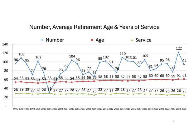 2. Life insurance amount for each retiree depends on the amount of pension received at time of retirement. Insurance would be the yearly amount at that time.